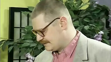 Nanny makes young dude fuck her then she fucks blonde babe with strap-on