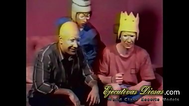 Slender blonde Leslie Taylor enjoys screwing two cocks at the barn