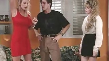 Guy drills hot busty blonde and retro brunette in the house